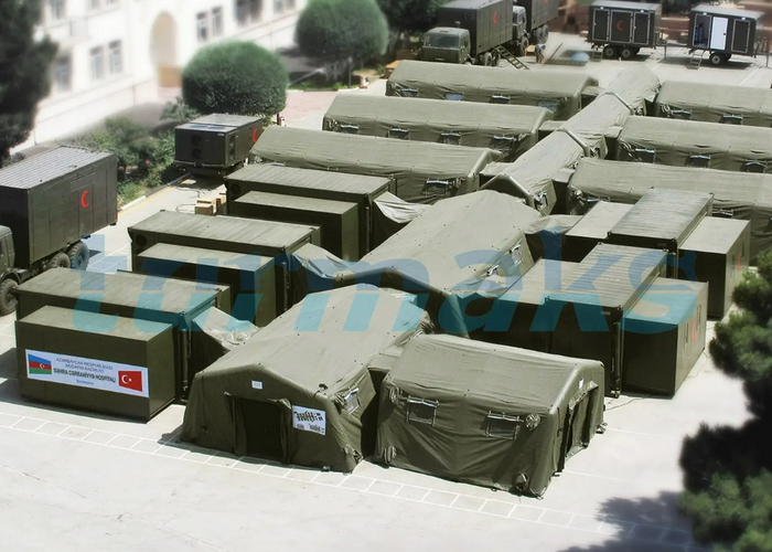 It is designed to be deployed in a short period of time. It has basic diagnostical and surgical capabilities with necessary inpatient capacity. To achieve that it is composed of autolift expandable containers and inflatable tents.